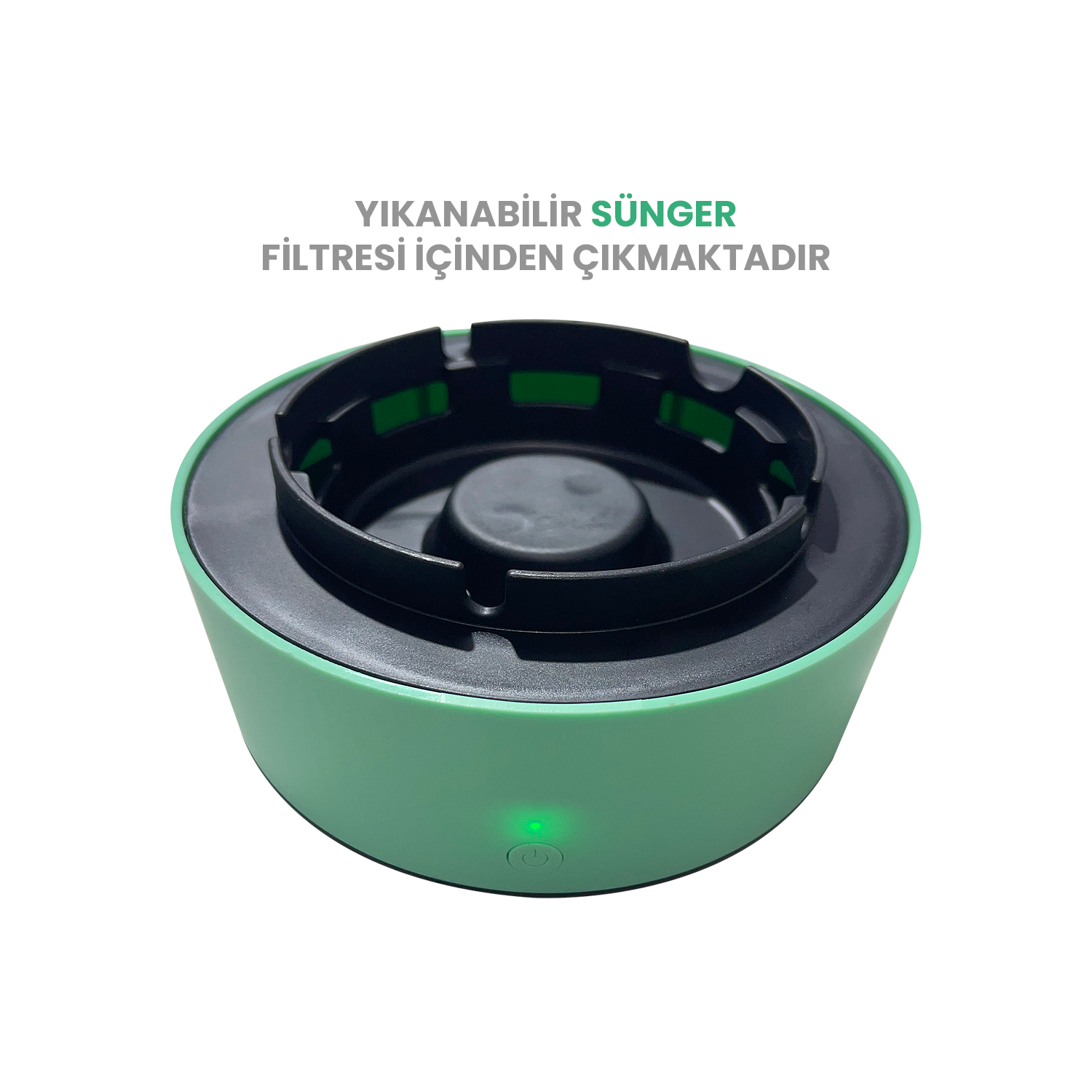 Fanlı Kül Tablası / Sigara Dumanını İçine Çeker / Yıkanabilir Filtreli